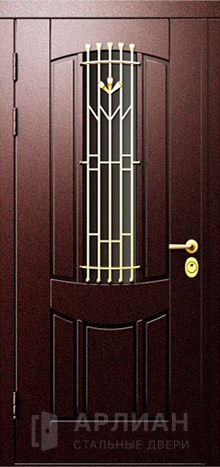 Двустворчатая дверь со стеклом и кованной решеткой №2